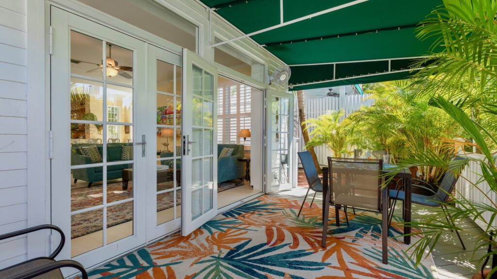 This 2 bedroom 2.5 bath private home in a secluded section of the gated community of Truman Annex quietly sits among prestigious two story private homes that has high ceilings, crown molding and flooded with natural light. Three sets of French doors with transom windows lead out to your private patio. Enjoy dinner or cocktails while surrounded by the privacy of lush foliage and palm trees. Comfortably furnished with chairs and tables and fenced, this space provides a respite from the excitement of Duval Street. Located one block from Mile Marker 0 - location, location, location. An assigned parking spot right in front of the house for 1 car. Amenities include 3 TV's, Amazon Echo Blue tooth speakers. ("Alexa play some Jimmy Buffett") high speed internet service, fully equipped kitchen and a washer & dryer.